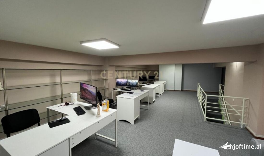 Ambienti eshte i organizuar ne dy kate, perkatesisht ne: -Open Space, te organizuar ne 2 kate te cilet lidhen me shkalle te brendshme -Tualete Ambienti ka nje siperfaqe totale prej 125 m2. Eshte i vendosur ne katin 0 te nje pallati te ri te miradministuar. Ambienti eshte i vendosur ne nje prej zonave me levizshmeri te larte nje mundesi e frytshme investimi. Ambienti i pershtatshem per zhvillimin e aktiviteteve te tilla si zyra, ambient komercial, sallon estetik etj. Me nje qira mujore 1000 euro (neto).